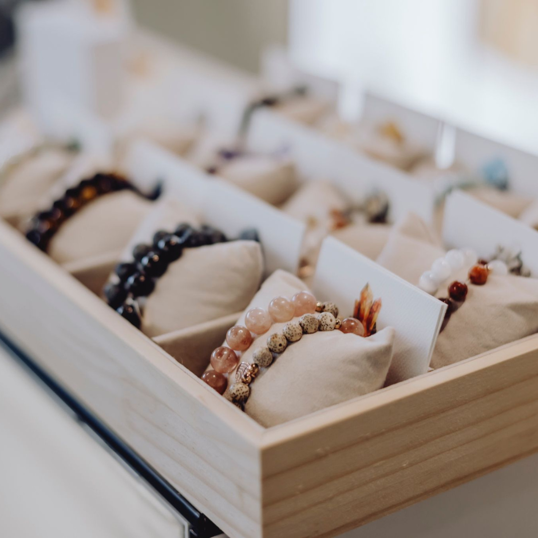 Jedes Armband wird von Hand gefertigt – mit Liebe zum Detail, ruhiger Aufmerksamkeit und dem Gespür für Farbe und Material. Jeder Kristall wird bewusst ausgewählt und zu einem harmonischen Ganzen gefügt. So entstehen Stücke, die nicht nur schön zu tragen sind, sondern auch eine Verbindung schaffen – zu dir selbst und zur Natur.